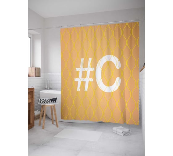 Штора (занавеска) для ванной JoyArty "Оранжевая c с хештэгом" из сатена, 180х200 см с крючками, sc_3998somonc