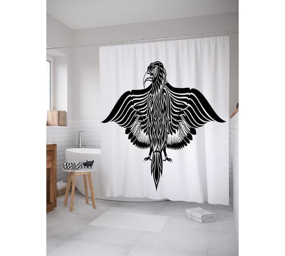 Штора (занавеска) для ванной JoyArty "Орел эмблема" из сатена, 180х200 см с крючками, sc_63499