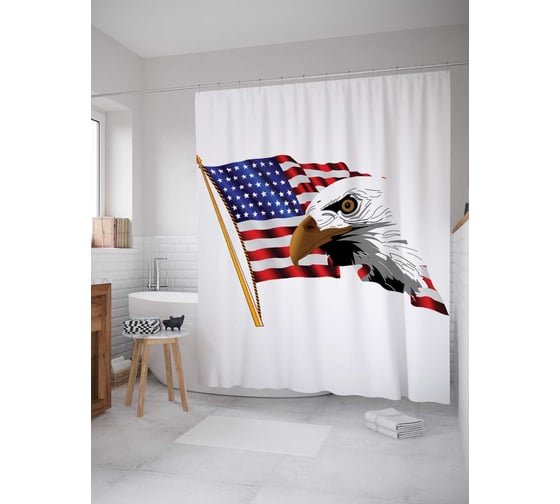 Штора (занавеска) для ванной JoyArty "Орел на флаге америки" из сатена, 180х200 см с крючками, sc_20696
