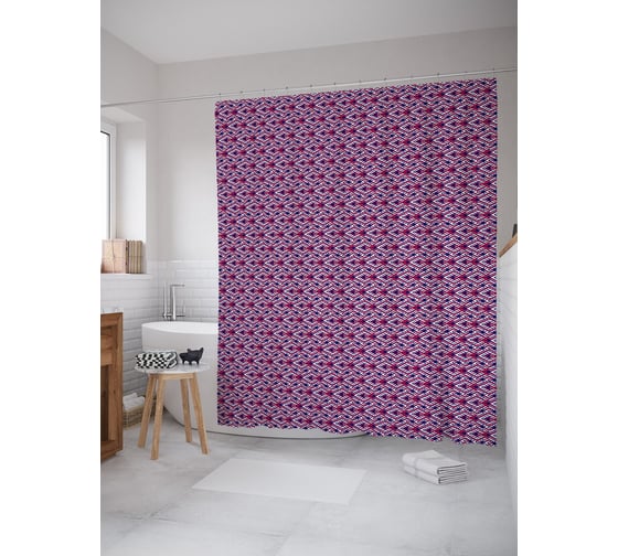 Штора (занавеска) для ванной JoyArty "Орнамент из ромбов" из сатена, 180х200 см с крючками, sc_57655