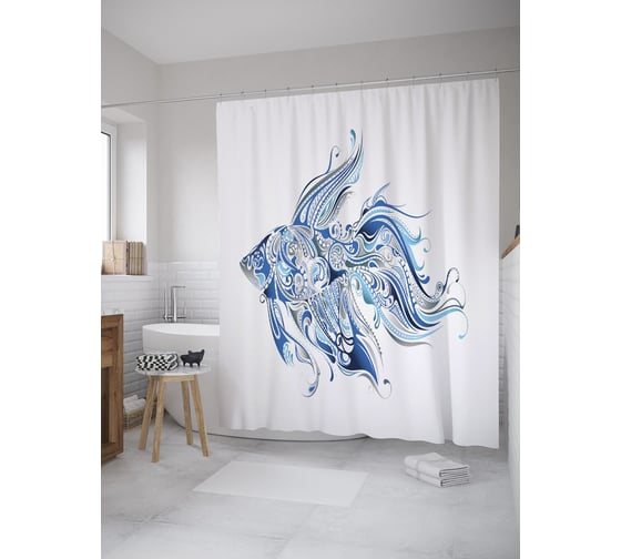 Сопутствующие товары для шторки-занавески JOYARTY Орнаментальная рыба из сатена, 180х200 см с крючками