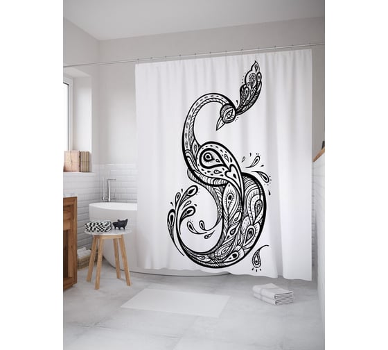 Штора (занавеска) для ванной JoyArty "Орнаментальная жар-птица" из сатена, 180х200 см с крючками, sc_63099