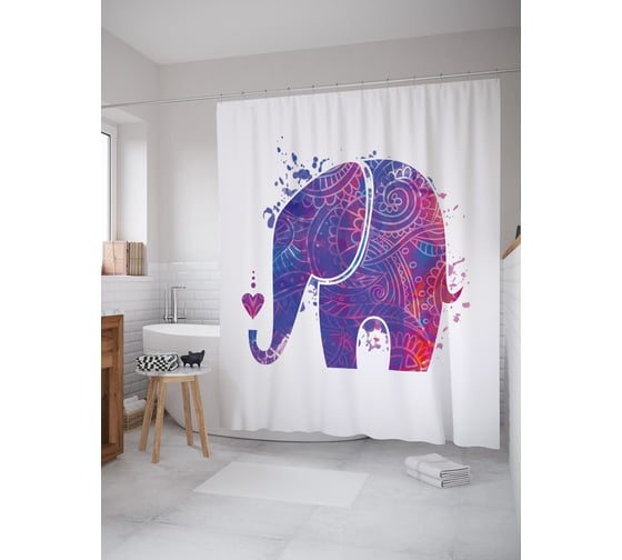 Штора (занавеска) для ванной JoyArty "Орнаментальный слон с сердцем" из сатена, 180х200 см с крючками, sc_63287