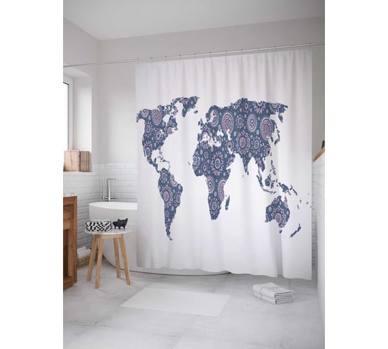 Сопутствующие товары для шторки-занавески JOYARTY Орнаменты на материках из сатена, 180х200 см с крючками