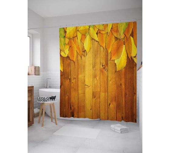 Штора (занавеска) для ванной JoyArty "Осень на досках" из сатена, 180х200 см с крючками, sc_37678