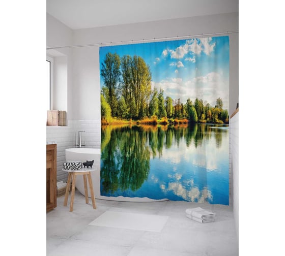 Штора (занавеска) для ванной JoyArty "Осеннее дыхание" из сатена, 180х200 см с крючками, sc_19308