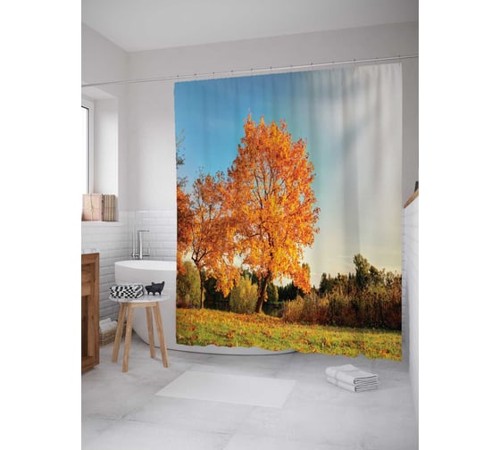 Штора (занавеска) для ванной JoyArty "Осеннее солнышко" из сатена, 180х200 см с крючками, sc_19328