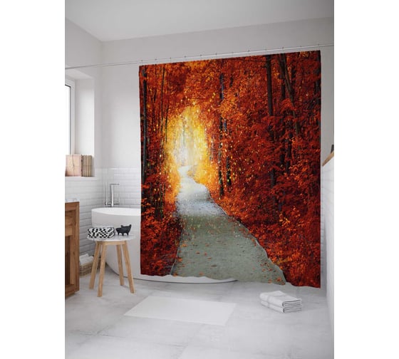Штора (занавеска) для ванной JoyArty "Осенний тоннель" из сатена, 180х200 см с крючками, sc_30756