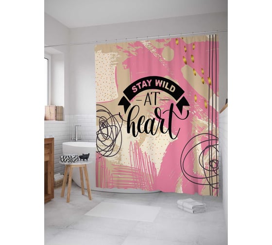 Штора (занавеска) для ванной JoyArty "Оставайся диким в сердце" из сатена, 180х200 см с крючками, sc_78603
