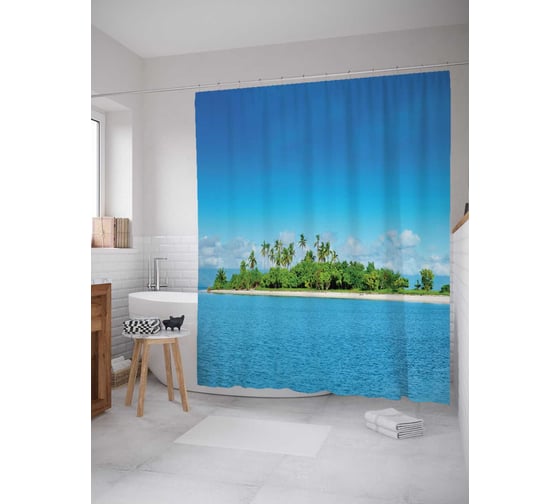 Штора (занавеска) для ванной JoyArty "Остров загадок" из сатена, 180х200 см с крючками, sc_9565