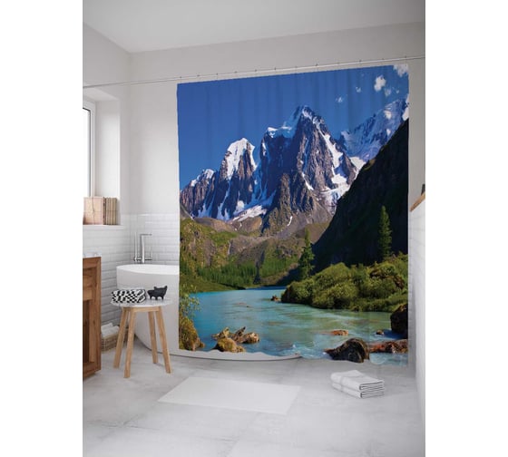 Штора (занавеска) для ванной JoyArty "От весны к зиме один шаг" из сатена, 180х200 см с крючками, sc_16199