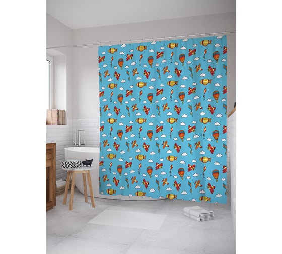 Штора (занавеска) для ванной JoyArty "От Воздушного змея до дирижабля" из сатена, 180х200 см с крючками, sc_53387