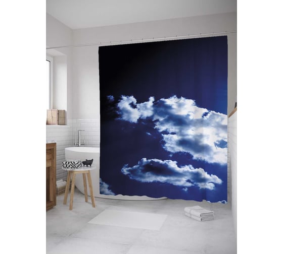 Штора (занавеска) для ванной JoyArty "Отдельное облако" из сатена, 180х200 см с крючками, sc_35343