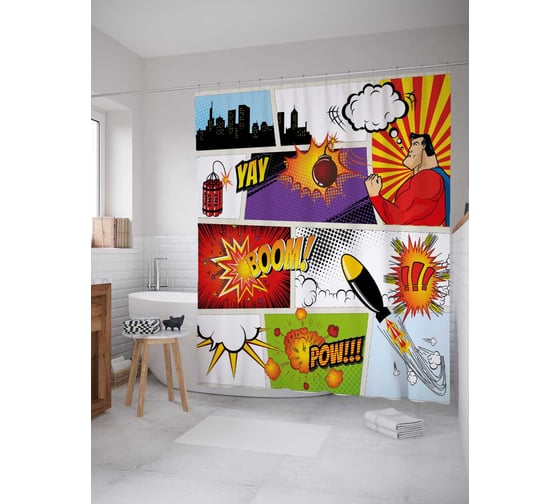 Сопутствующие товары для шторки-занавески JOYARTY Отрывки комикса из сатена, 180х200 см с крючками