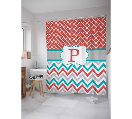 Штора (занавеска) для ванной JoyArty "P с зигзагами" из сатена, 180х200 см с крючками, sc_5337p