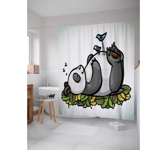 Штора (занавеска) для ванной JoyArty "Панда в релаксе" из сатена, 180х200 см с крючками, sc_38570