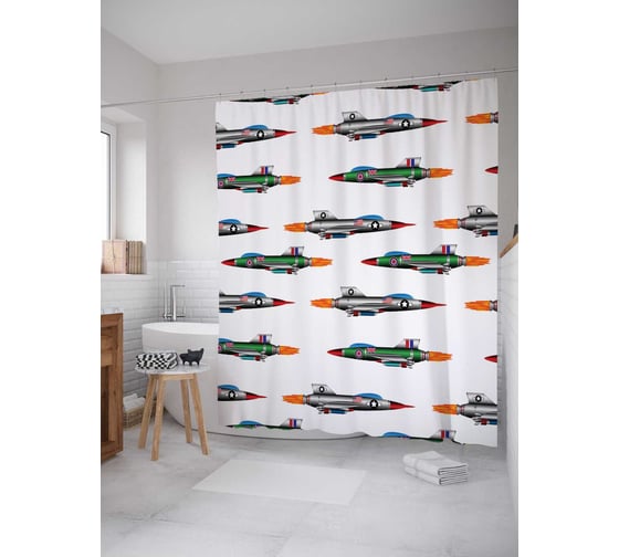 Сопутствующие товары для шторки-занавески JOYARTY Парад истребителей из сатена, 180х200 см с крючками