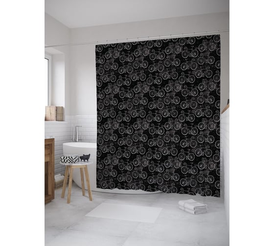 Штора (занавеска) для ванной JoyArty "Парад велосипедов" из сатена, 180х200 см с крючками, sc_61446