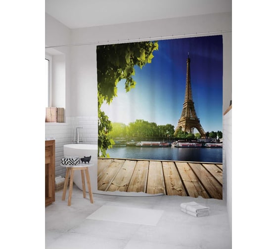 Сопутствующие товары для шторки-занавески JOYARTY Парижские теплоходы из сатена, 180х200 см с крючками