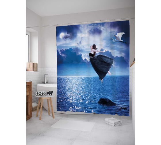 Штора (занавеска) для ванной JoyArty "Парящая над океаном" из сатена, 180х200 см с крючками, sc_29786