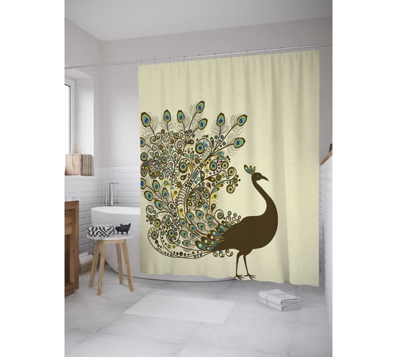Штора (занавеска) для ванной JoyArty "Павлин с распустившимся хвостом" из сатена, 180х200 см с крючками, sc_28123