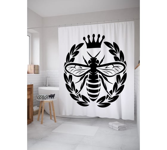 Штора (занавеска) для ванной JoyArty "Пчела-королева" из сатена, 180х200 см с крючками, sc_52846