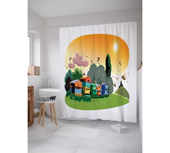 Штора (занавеска) для ванной JoyArty "Пчелиная работа" из сатена, 180х200 см с крючками, sc_72765