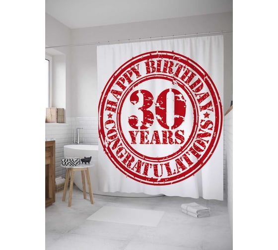 Штора (занавеска) для ванной JoyArty "Печать 30-летия" из сатена, 180х200 см с крючками, sc_33180