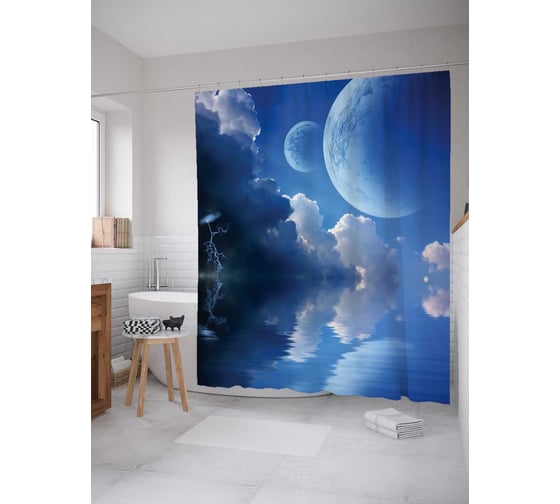 Штора (занавеска) для ванной JoyArty "Переменчивая ночная погода" из сатена, 180х200 см с крючками, sc_12909