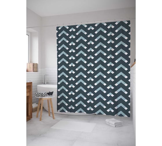Штора (занавеска) для ванной JoyArty "Перевернутые галочки" из сатена, 180х200 см с крючками, sc_34117