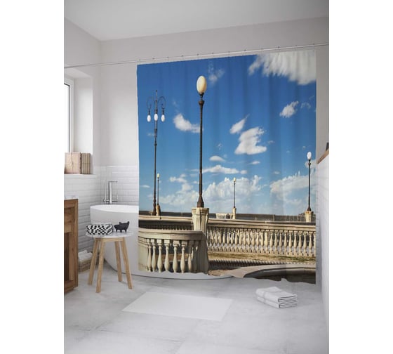 Штора (занавеска) для ванной JoyArty "Перила с колоннами" из сатена, 180х200 см с крючками, sc_34875