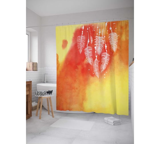 Штора (занавеска) для ванной JoyArty "Перья в мареве" из сатена, 180х200 см с крючками, sc_17073