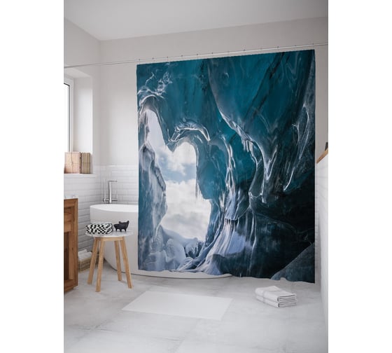 Штора (занавеска) для ванной JoyArty "Пещера во льду" из сатена, 180х200 см с крючками, sc_53572