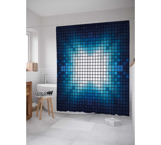 Штора (занавеска) для ванной JoyArty "Пиксельная вспышка" из сатена, 180х200 см с крючками, sc_30752