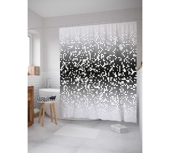 Сопутствующие товары для шторки-занавески JOYARTY Пиксельный монохром из сатена, 180х200 см с крючками