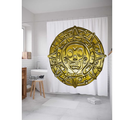 Штора (занавеска) для ванной JoyArty "Пиратская монета" из сатена, 180х200 см с крючками, sc_38212