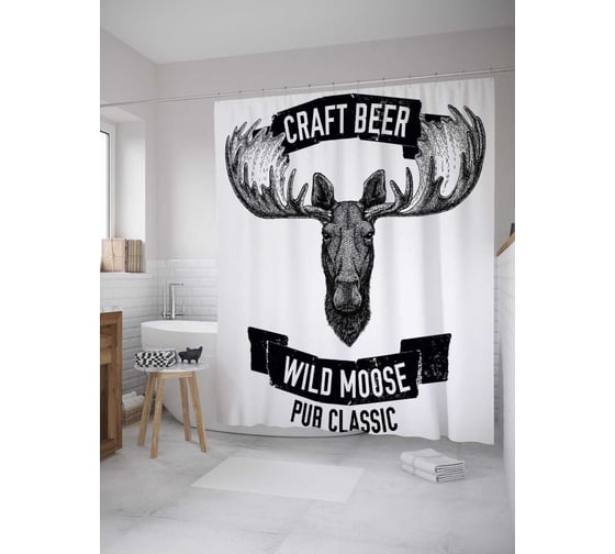 Сопутствующие товары для шторки-занавески JOYARTY Пиво Дикий лось из сатена, 180х200 см с крючками