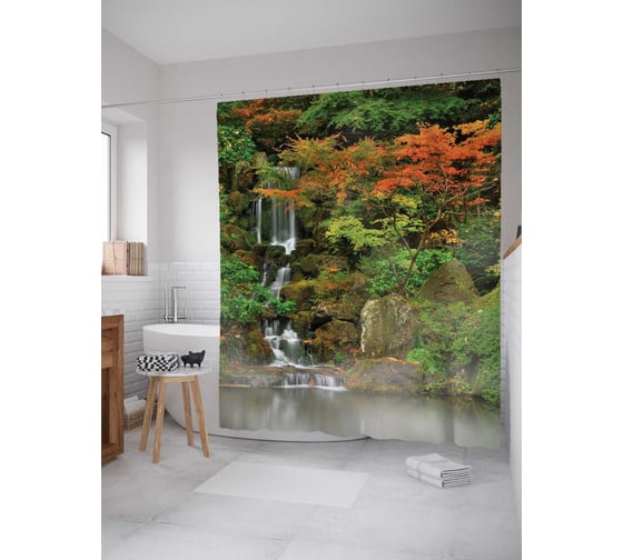 Штора (занавеска) для ванной JoyArty "Плавный водопад" из сатена, 180х200 см с крючками, sc_19629