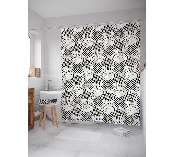 Штора (занавеска) для ванной JoyArty "Плетенная иллюзия" из сатена, 180х200 см с крючками, sc_12452