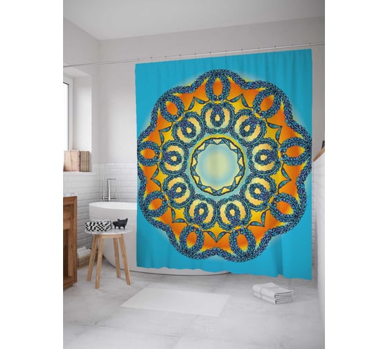 Штора (занавеска) для ванной JoyArty "Плетеные цветы" из сатена, 180х200 см с крючками, sc_21228