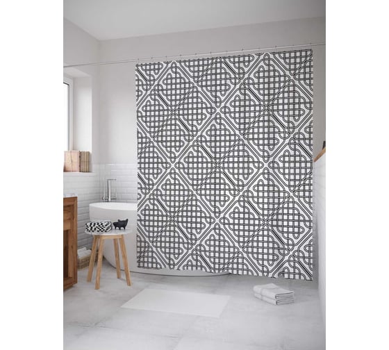 Штора (занавеска) для ванной JoyArty "Плетеный узор" из сатена, 180х200 см с крючками, sc_16906