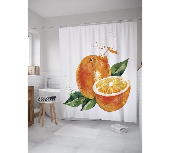 Штора (занавеска) для ванной JoyArty "Плода мандарина" из сатена, 180х200 см с крючками, sc_59386