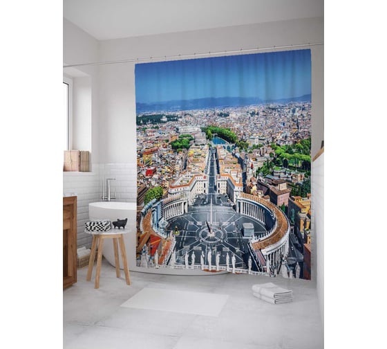 Штора (занавеска) для ванной JoyArty "Площадь Святого Петра в Ватикане" из сатена, 180х200 см с крючками, sc_13658