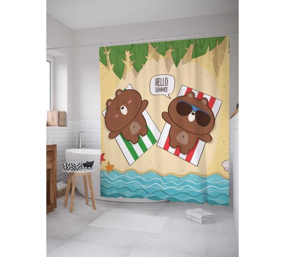 Сопутствующие товары для шторки-занавески JOYARTY Пляжные медведи из сатена, 180х200 см с крючками