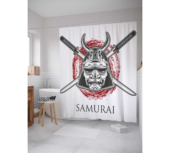 Штора (занавеска) для ванной JoyArty "Победа самурая" из сатена, 180х200 см с крючками, sc_18283