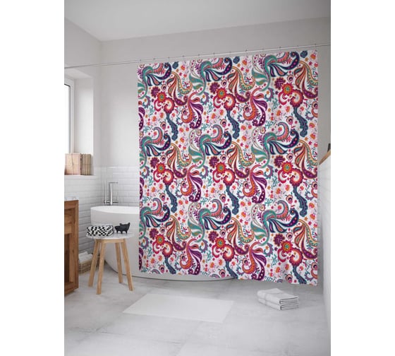 Штора (занавеска) для ванной JoyArty "Почувствуй красочность" из сатена, 180х200 см с крючками, sc_17947