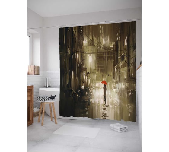 Штора (занавеска) для ванной JoyArty "Под дождем" из сатена, 180х200 см с крючками, sc_21364