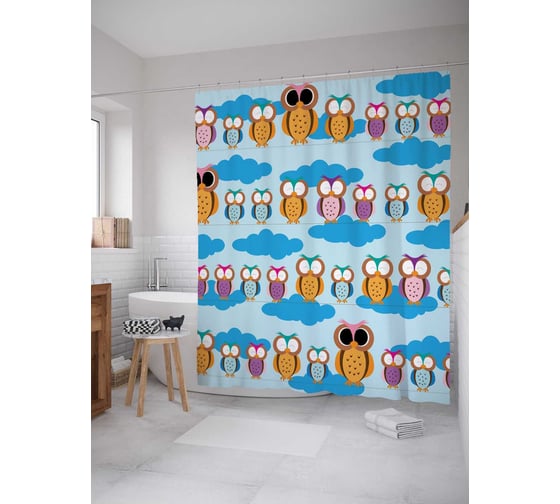 Штора (занавеска) для ванной JoyArty "Подозрительные совы" из сатена, 180х200 см с крючками, sc_3832