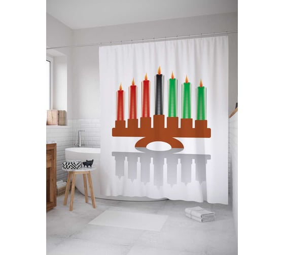 Штора (занавеска) для ванной JoyArty "Подсвечник перфекциониста" из сатена, 180х200 см с крючками, sc_5868
