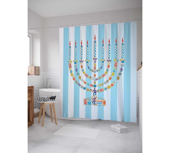 Штора (занавеска) для ванной JoyArty "Подсвечник праздничный" из сатена, 180х200 см с крючками, sc_5861